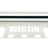 Westins E-Series Bull Bar is a front-end light bar designed for trucks and larger model SUVs. It mounts to the vehicles existing mounting points with no drilling required and comes complete with vehicle specific mount kit. It also features mounting points for 2 auxiliary lights up to 6 inches in diameter. The E-Series Bull Bar features a laser cut Westin block letter logo design on the skid plate. Available in black powder coated e-coated steel with a textured black skid plate backed by a 3 year warranty. Optional license plate bracket is available.