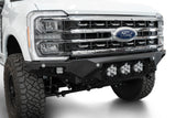 The Bomber Front Bumper brings a unique and aggressive style to the front end of your Super Duty. At the center of the bumper are 3 flush mounting points for Baja Designs LP6 round lights. On each wing is a mounting point for a single 3-inch pod light, such as Baja Squadron cube lights. These options provide ample lighting while on- or off-road. OEM features like the parking sensors are retained after installing the Bomber. Recovery options include 1-inch thick clevis mounts that take ?-inch D-ring tow shackles (?-inch pins.) An included 3/16-inch aluminum bumper skid plate provides additional protection and style to the front end of your F-250/350. The Bomber Front Bumper is finished in a Hammer Black powder coat, is fully bolt-on, and like always; Made in America.