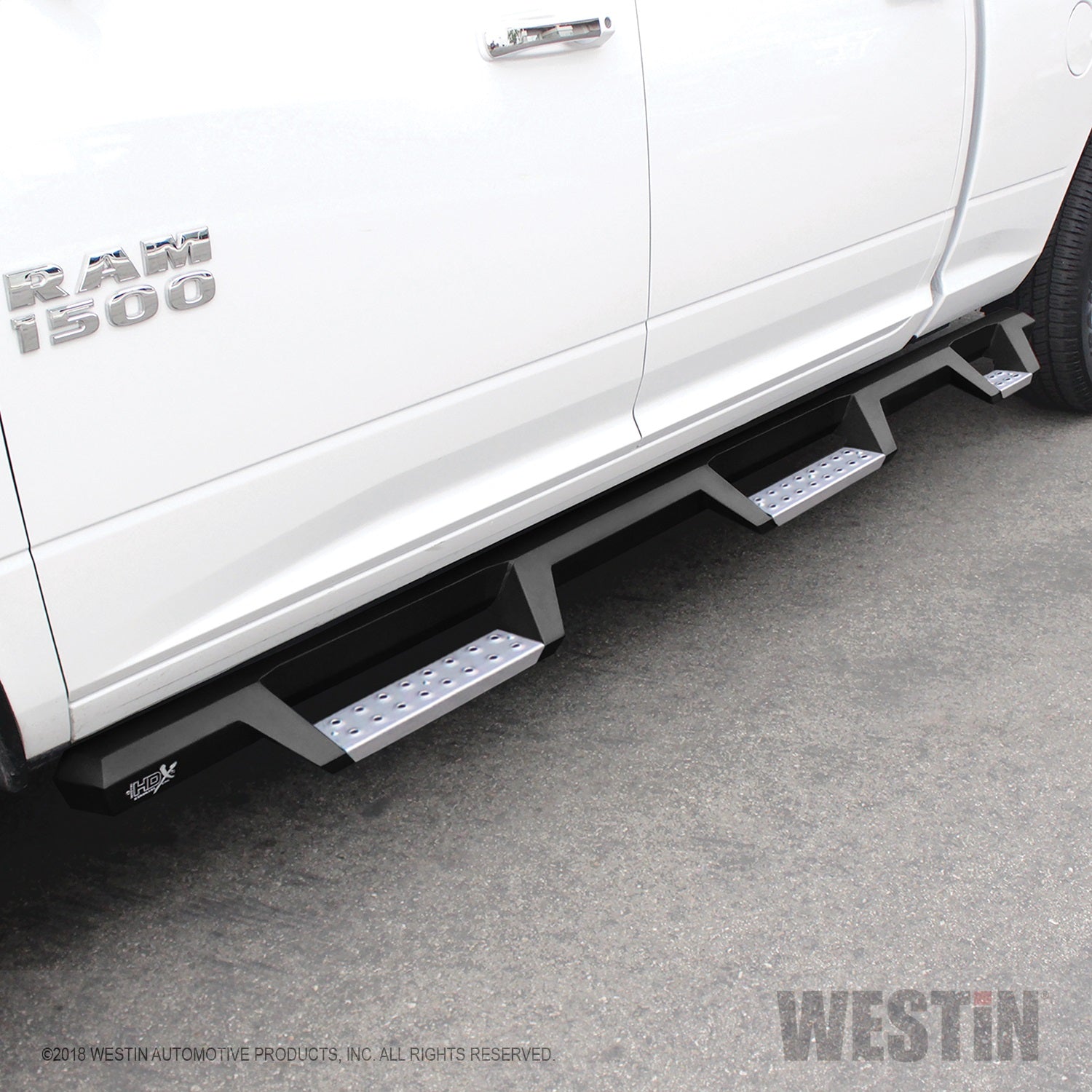 Westin's HDX Stainless Drop W2W Nerf Step Bars are built with corrosion-resistant, textured black painted stainless steel designed to last under the toughest of conditions. Built with 1-piece construction, these Nerf Step Bars feature a notched bar design with a 3rd step location for easy bed access and provide over 2 more inches of toe/heel step area than our competitors. The longer length of our HDX Stainless Drop WTW Nerf Step Bars provides added vehicle accessability, with the bar still fitting tight to your vehicle's rocker panel for a solid fit and rugged look. Product includes a set of installed stainless steel step pads as well as a set of black mild steel step pads so you can switch plates out based on preference. Step plates are rust resistant and provide maximum traction. Bolt-on installation so no drilling is required. Includes Mount Kit. Westin's exclusive Isolator Bracket supports the step bar past the truck cab, a feature that competitors do not offer. Without an Isolator Bracket, the step area that extends past the vehicle is left unsupported. Our unique design provides extra bed support without resulting in annoying creaking sounds.