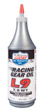 Lucas Oil L9 7.5 wt High Performance Synthetic Racing Gear Oil is blended with an exclusive additive package containing effective anti-wear agents and extreme friction reducers that are unique to the industry. Provides excellent thermal stability and longevity and is recommended for use in both transmissions and differentials. Lucas Oil L9 7.5 wt High Performance Synthetic Racing Gear Oil is a low viscosity, low drag formula designed for racing applications only. Dyno tested for proven friction reduction and track tested with proven performance in IRL, NASCAR and NHRA.