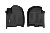 Keep your carpet in pristine condition with Rough Country's Floor Armor: Heavy Duty Floor Mats and Rear Cargo Liners. These eco-friendly, semi-flexible floor mats are made of an ultra-durable Polyethylene that offers a strong, rigid shape that's incredibly easy to clean. Where simple rubber floor mats fail, Rough Country's line of Floor Armor is guaranteed for life and will never crack, split, or break-down over time. The high-quality design extends the lifespan of your carpets and the raised-lip design ensures your interior will always be protected from mud, moisture, and more. These contoured floor mats are laser-measured for each make and model; designed to be a precise fit that grips the carpet and stays put. An aggressive looking textured surface gives your muddy shoes plenty of traction and looks great inside the vehicle. No matter what you track in, Rough Country Floor Armor is incredibly easy to clean. Just pop them out of the floorboards and rinse away the dirt! Includes Rough Country's Lifetime Replacement Warranty.