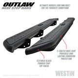 Westins Outlaw Nerf Step Bars offer the perfect balance between function and strength resulting in the ultimate rugged look designed to last and impress. Engineered to fit tightly against rocker panels, the Outlaw Nerf Step Bars provide a solid fit and superb protection while simultaneously improving vehicle cab access. Whether you are an avid overlander or simply an off-roader, rest assured you will be safely stepping into your vehicle with a 16 gauge steel coarse step surface and 2" diameter tubing. Featuring bolt-on installation, an e-coated base coat and textured black powder coat top finish, Westins Outlaw Nerf Step Bars are the ideal match for the toughest of conditions.