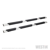 Get a boost, with Westins R5 M-Series Wheel-To-Wheel Nerf Step Bars. The extra wide 5" footprint step design provides easier and safer vehicle access for both drivers and passengers. Developed and engineered in the USA, the R5 M-Series Wheel-to-Wheel Nerf Step Bars feature three oversized skid resistant step pads allowing easy access to the vehicle cab or truck bed cargo area. Built with high-grade and corrosion resistant steel designed to mount directly to your vehicles existing rocker panels. The modular design saves you money on shipping, as no truck freight costs are required. Also included are injection molded bracket covers for a clean and stylish look. Westins exclusive Isolator Bracket supports the step bar past the truck cab, a feature that competitors do not offer. Without an Isolator Bracket, the step area that extends past the vehicle is left unsupported. Westins unique design provides added bar support without resulting in annoying creaking sounds.