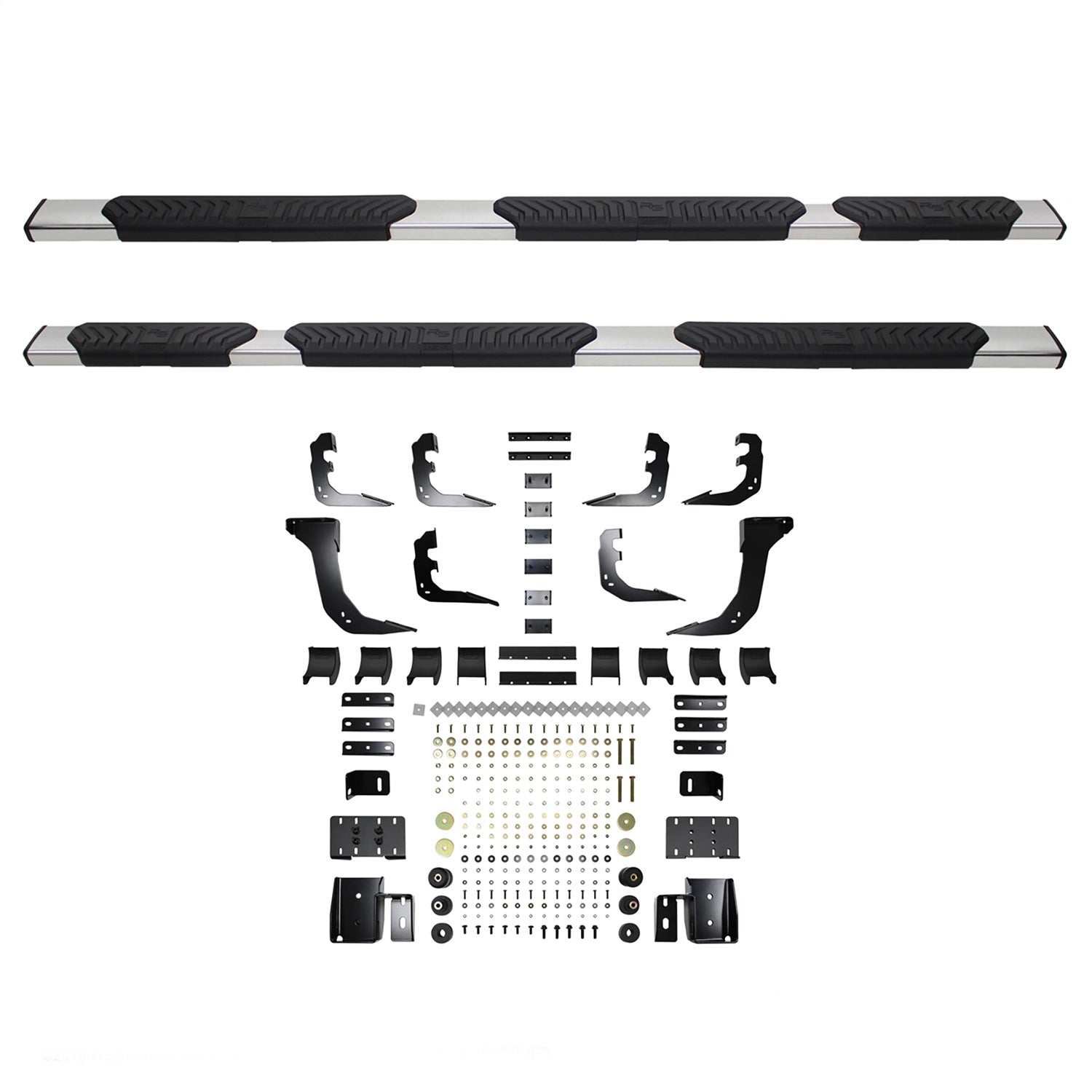 Get a boost, with Westins R5 M-Series Wheel-To-Wheel Nerf Step Bars. The extra wide 5" footprint step design provides easier and safer vehicle access for both drivers and passengers. Developed and engineered in the USA, the R5 M-Series Wheel-to-Wheel Nerf Step Bars feature three oversized skid resistant step pads allowing easy access to the vehicle cab or truck bed cargo area. Built with high-grade and corrosion resistant steel designed to mount directly to your vehicles existing rocker panels. The modular design saves you money on shipping, as no truck freight costs are required. Also included are injection molded bracket covers for a clean and stylish look. Westins exclusive Isolator Bracket supports the step bar past the truck cab, a feature that competitors do not offer. Without an Isolator Bracket, the step area that extends past the vehicle is left unsupported. Westins unique design provides added bar support without resulting in annoying creaking sounds.