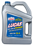 Lucas High TBN SAE 15W-40 Truck Oil is a blend of high quality base oils and an additive package that allows extended drain intervals and a much higher degree of protection from metal to metal contact. This product is excellent for gasoline engines. The user can expect the following: 1. EXTENDED DRAIN INTERVALS--UP TO TWICE AS LONG. After 20,000 miles, sample oil every 5,000 miles to determine maximum oil life for each particular engine. 2. ELIMINATION OF DRY STARTS. The exclusive additive package ensures a protective film on parts at all times. 3. LOWER OPERATING TEMPERATURES. Normal oil temperature will be lower but more importantly, the additive film in Lucas SAE 15W-40 will not rupture in an over-heating situation. 4. EXTENDED PROTECTION FROM FUEL DILUTION. The additive package is more resistant to break down from the solvents in diesel fuel than common additive packages found in regular 15W-40 blends. 5. HIGH DETERGENT ACTION. Motor oil is usually changed because it's contaminated with combustion by-products, not because it's worn out. The high detergent action of Lucas SAE 15W-40 allows up to twice as much contamination to be held in suspension and still have good lubrication qualities. 6. A HIGHER DEGREE OF LUBRICITY. The slicker the oil, the easier the engine starts and the easier it runs. 7. HIGHER OIL PRESSURE. This means more protection and more cooling. 8. LESS OIL CONSUMPTION. The low volatility of Lucas SAE 15W-40 Truck Oil makes it harder to burn. The thicker oil film makes it harder for the oil to get past the rings to the combustion chamber. 9. MORE PROTECTION FOR OLDER ENGINES. Common engine oils are formulated for the tolerances of new engines only. The extra additives coat the parts with a heavy film that compensates for the extra space between the moving parts in older engines.