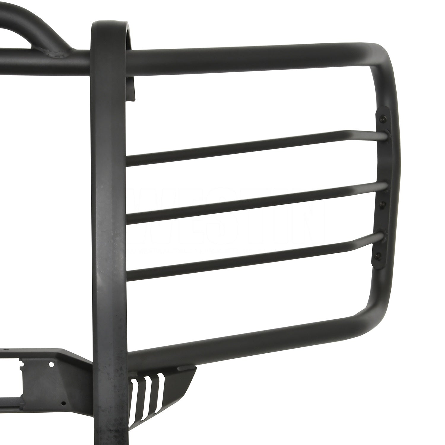 Westins Sportsman X Grille Guard effectively combines aggressive styling with heavy duty front end protection. Engineered to provide both great looks and performance, Sportsman Xs unique design compliments todays larger grille designs, and is available to fit most full and mid size truck applications. Sportsman X has an optional detachable mesh panel (sold separately) which is specifically designed to fit the opening in the center section of Sportsman X Grille Guard, or can be removed to accommodate the flush mounted 26" dual row LED light bar (sold separately). A smaller removable mesh panel designed for the factory sensor location opening is included as standard with Sportsman X. For specific Chevy and Dodge/RAM applications a Sportsman X Sensor Kit (sold separately) is available. An exterior step plate is located on the 1-5/8" bottom tube to provide easy access to the engine compartment. Built with heavy duty 2-1/4" upright rubber strips and 1- 5/8" outer tubes, Sportsman X Grille Guard is designed to provide protection and style for years to come.